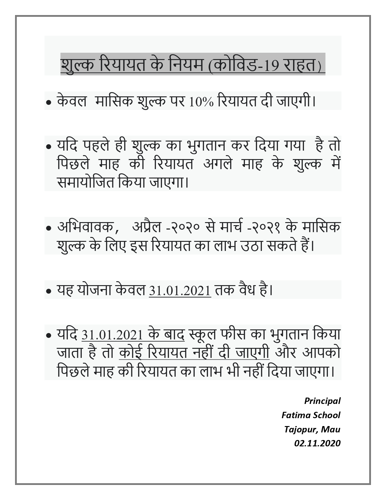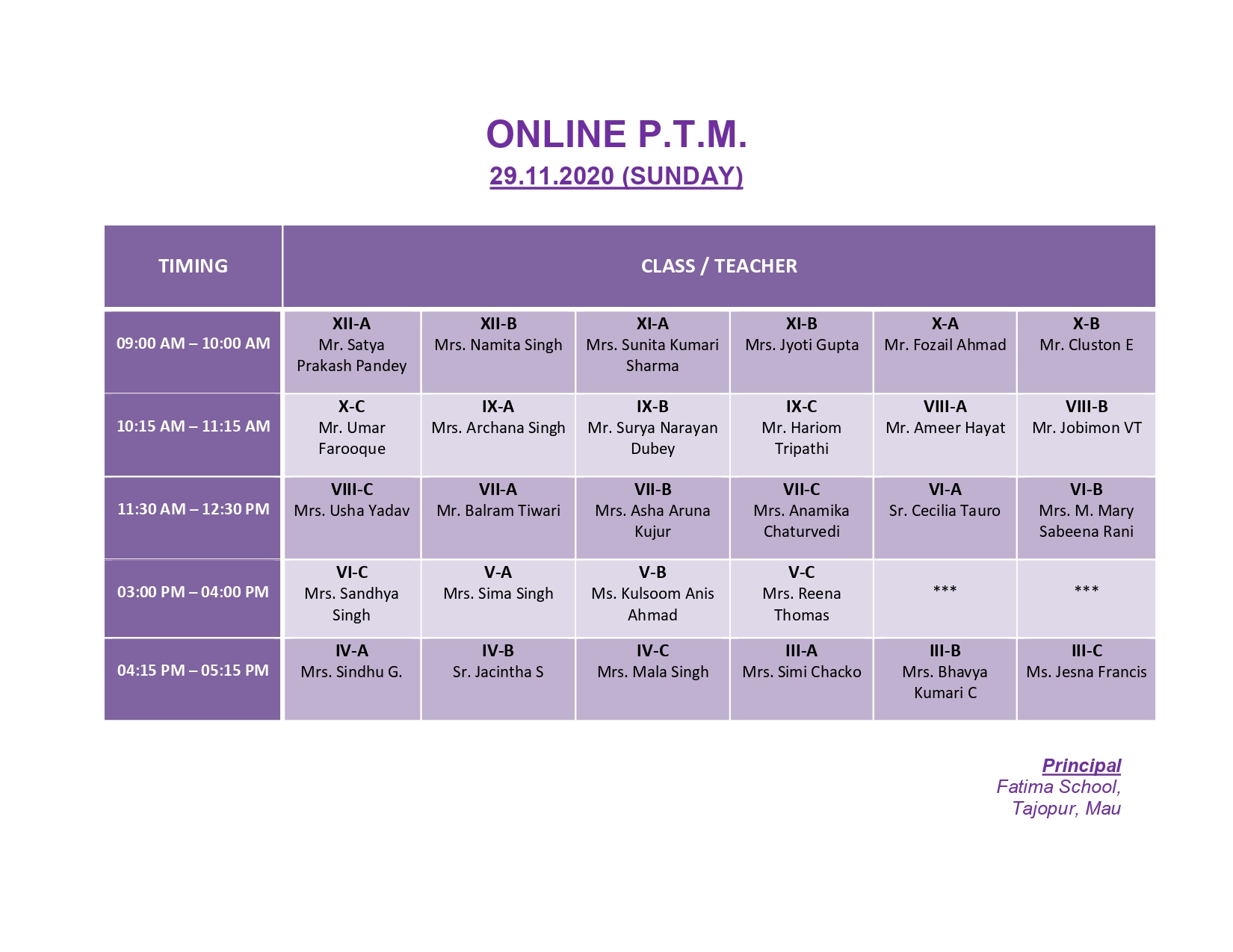 Online PTM for classes III to XII will be held on 29th November 2020.